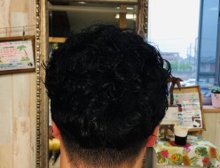 夏の男性にオススメのパーマスタイル。ツーブロックに強めのパーマで、軽やかスタイルの出来上がりです。朝は、髪を濡らしてジェルwaxかグロスを揉みこむだけで簡単にスタイリング出来ます。