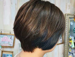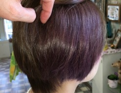 インナーカラーでブリーチしてブルーバイオレットをオンカラー。ショートで耳にかけるスタイルでインナーカラーが見えにくいので、多めにブリーチ部分を・・・。全体をアッシュ系カラーで染めて、ブリーチ部分にビビットなブルーバイオレット系のカラーをON。