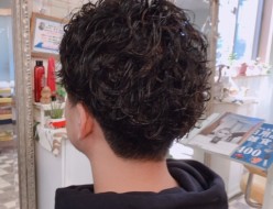 メンズのパーマスタイルのお客様です。大きめくるくるカールで、雰囲気が変わりお似合いでした。befor cut終了時パーマ巻き終わり、ロッドOFF時仕上げ、ドライヤーで乾かしジェルワックスをも見込むだけ。簡単に仕上げられます。