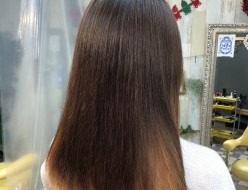部分的にブリーチをしてる髪でも、クリニック系縮毛矯正でストレートに出来ます。beforインナーカラーのブリーチが残り、クセも出てお手入れが難しい状態のお客様です。