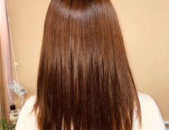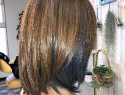 温かい日が多くなって来ました。湿気も多くなり、髪のウネりが気になり縮毛矯正のお客様が多い季節になってきました。インナーカラーが入っていて、ネープ部分がブリーチ毛のお客様です。