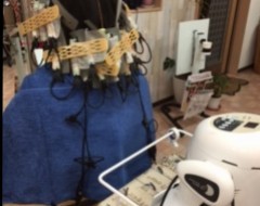デジタルパーマのお客様です。viveでは、「シルキーエステカール」というメニューになります。カット終了時。デジタルパーマ巻き終わり状態。機械に繋げて熱処理していきます。