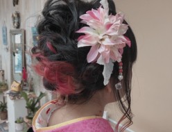 成人おめでとうございます!2020年成人式のお客様です。ピンクの着物が似合い、可愛らしく仕上げてみました。つくばみらい市陽光台つくばエクスプレス「みらい平駅」徒歩1分。